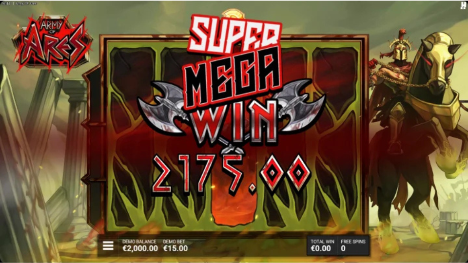 The Army of Ares slot casts you straight into the brutal battlefield of Ancient Greece, with war and the wrath of the god Ares himself as the central theme. The reels are drenched in fire, smoke, and warrior-worthy iconography, giving every spin a sense of dire conflict and high stakes