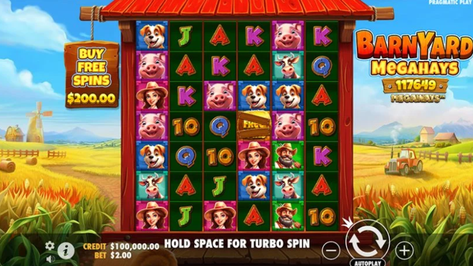 How does spending your day at the farm sound? Spending your time growing some corn and feeding pigs and cows. Is this something that you desire? If you do, the great news is that you can do all this, albeit virtually, when playing the Pragmatic Play-powered Barnyard Megahays Megaways slot machine.