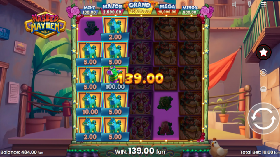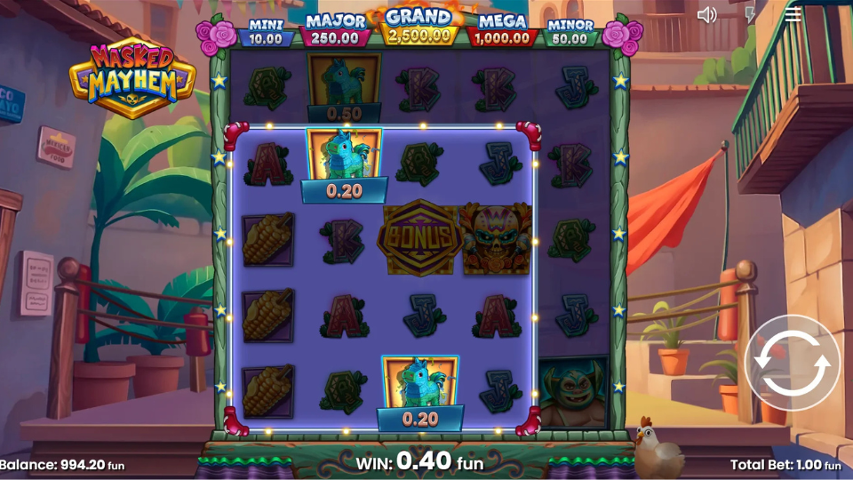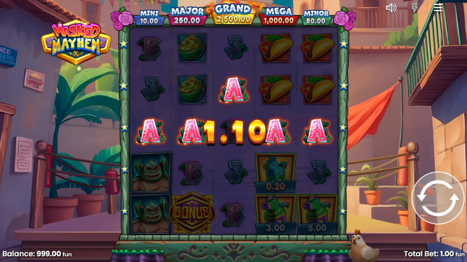 The Masked Mayhem slot plunges players into the vibrant world of Mexican lucha libre wrestling — masked fighters, lively street food icons and neon ring-side energy populate a 5 x 5 grid that feels more like stepping into a high-octane arena than a standard slot. The visuals bring tacos, guacamole, corn, and flamboyant luchador characters together under colourful spotlights and a cheering crowd soundtrack.