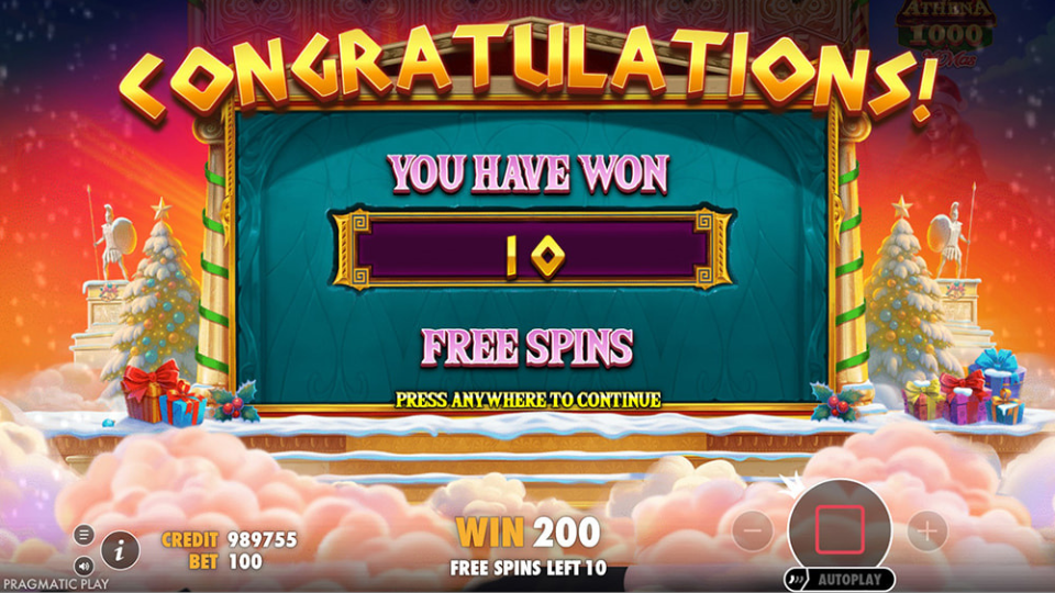 Wisdom of Athena 1000 Xmas delivers a festive reskin of a proven high-volatility slot. The growing multiplier free spins feature remains the core attraction, while the Ante Bet and Super Spin Bet allow players to adjust risk and gameplay rhythm. It is suited to players comfortable with infrequent bonuses and chasing large payouts within a seasonal theme.
